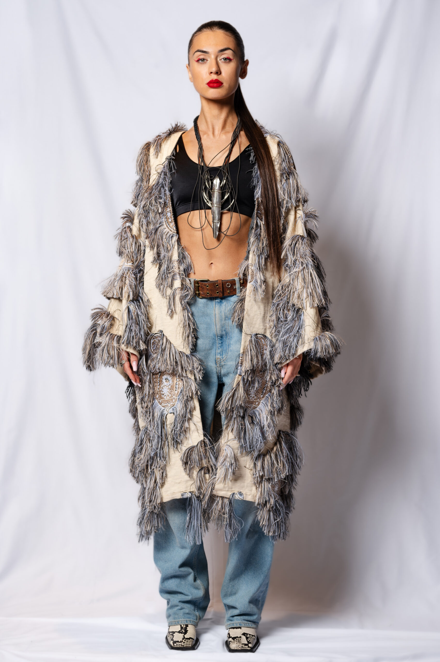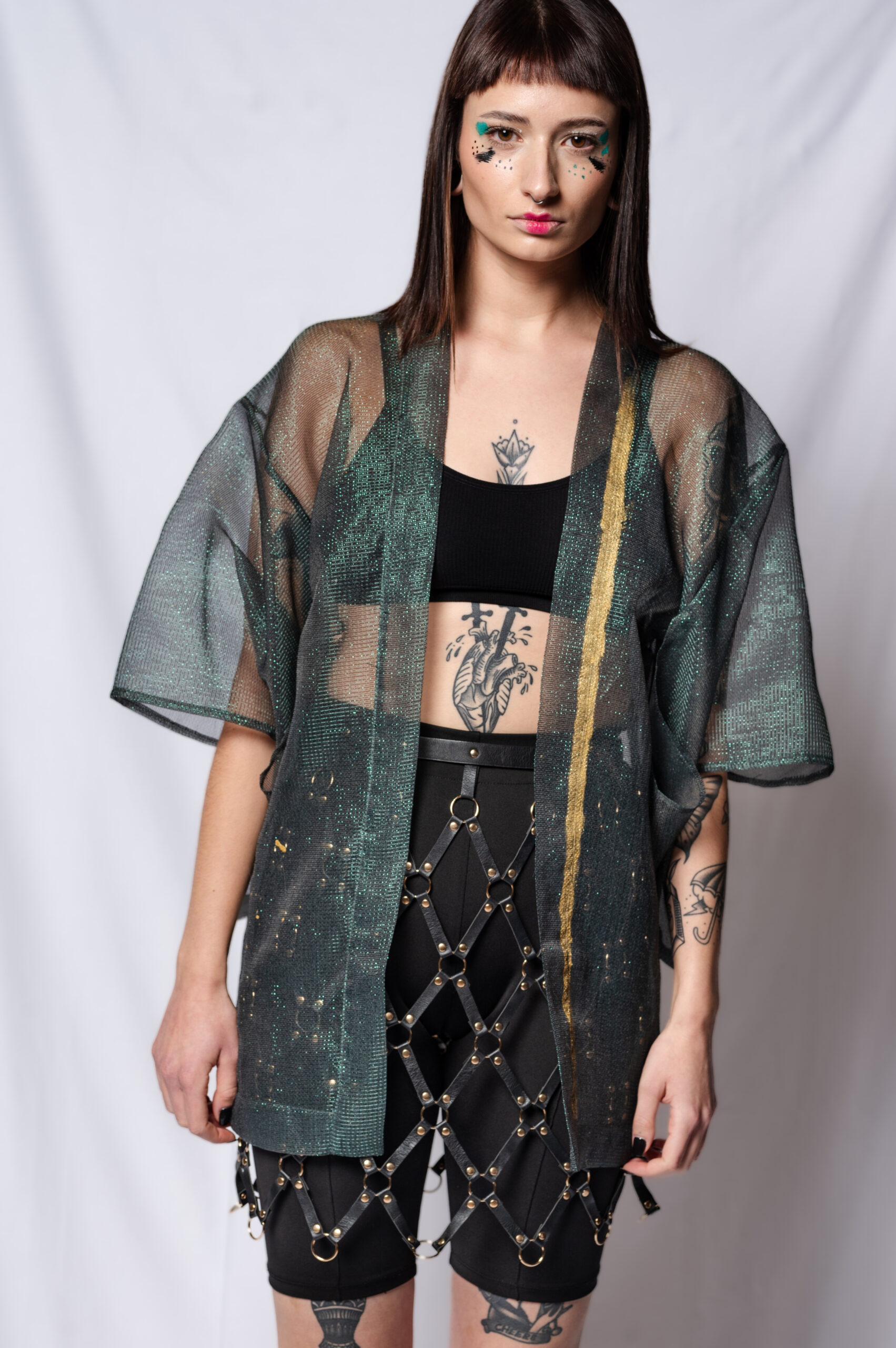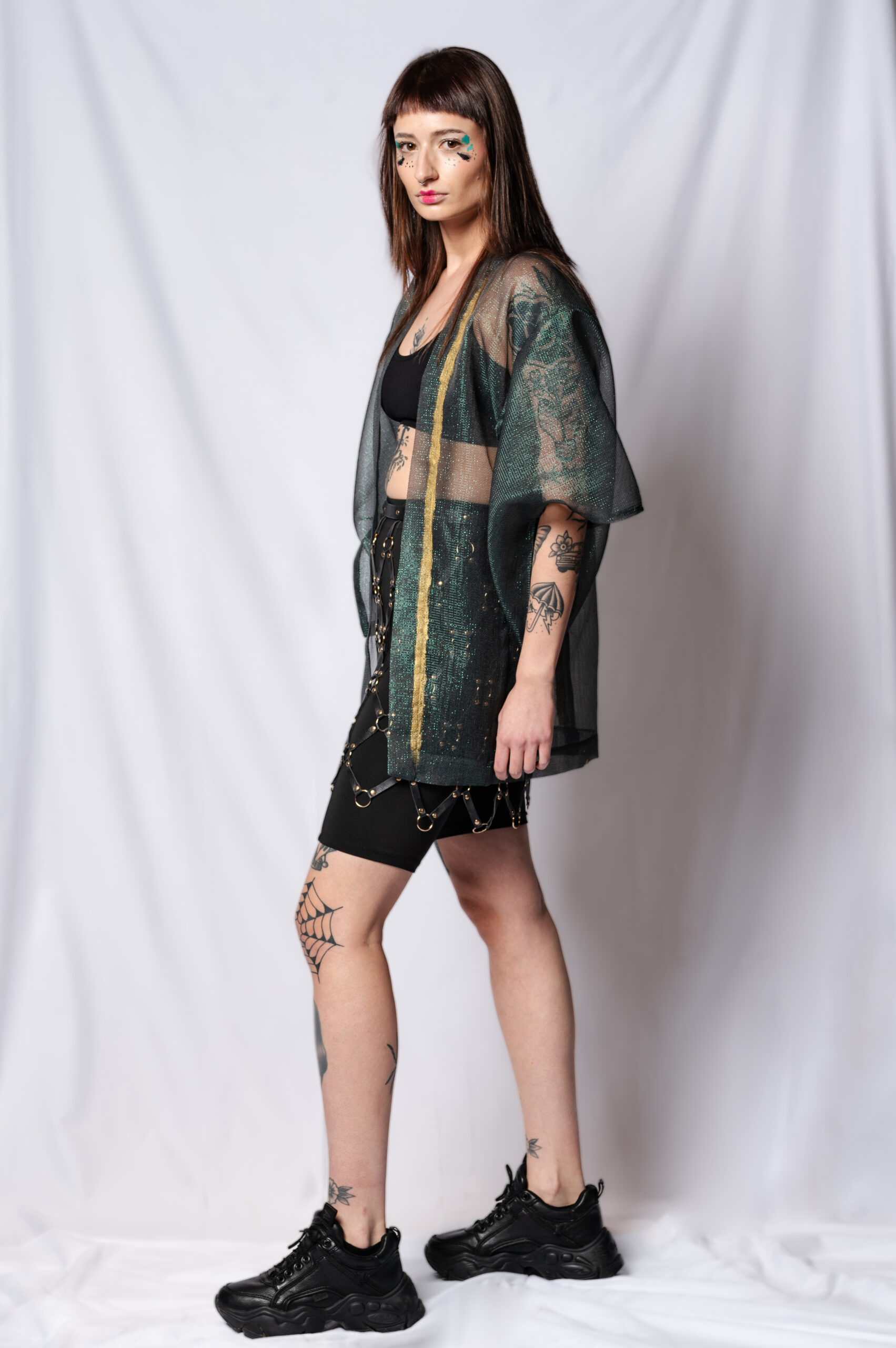 Effortless layering with soulful textures. Sheer Kimono for the free-spirited wanderer with a city edge.