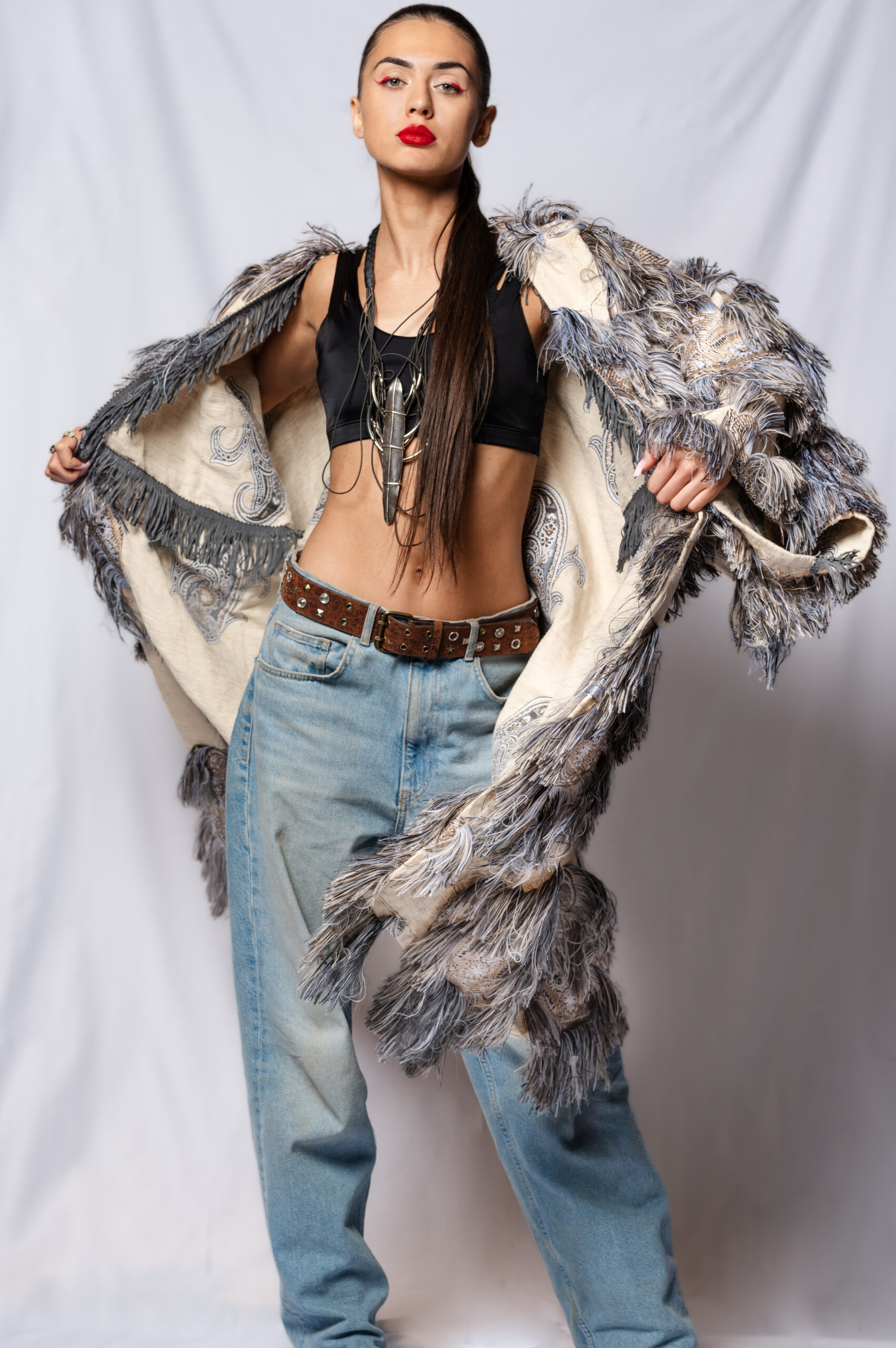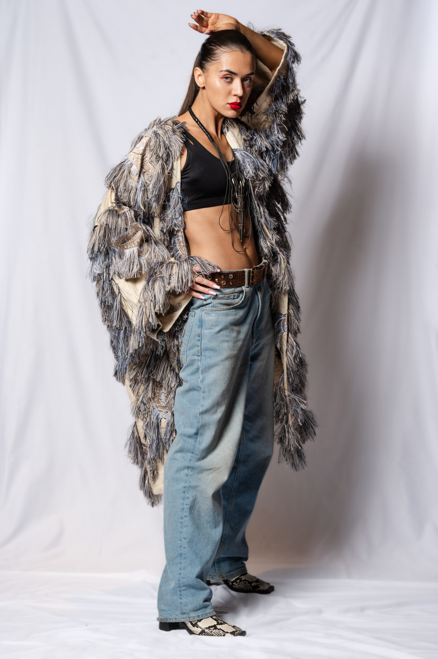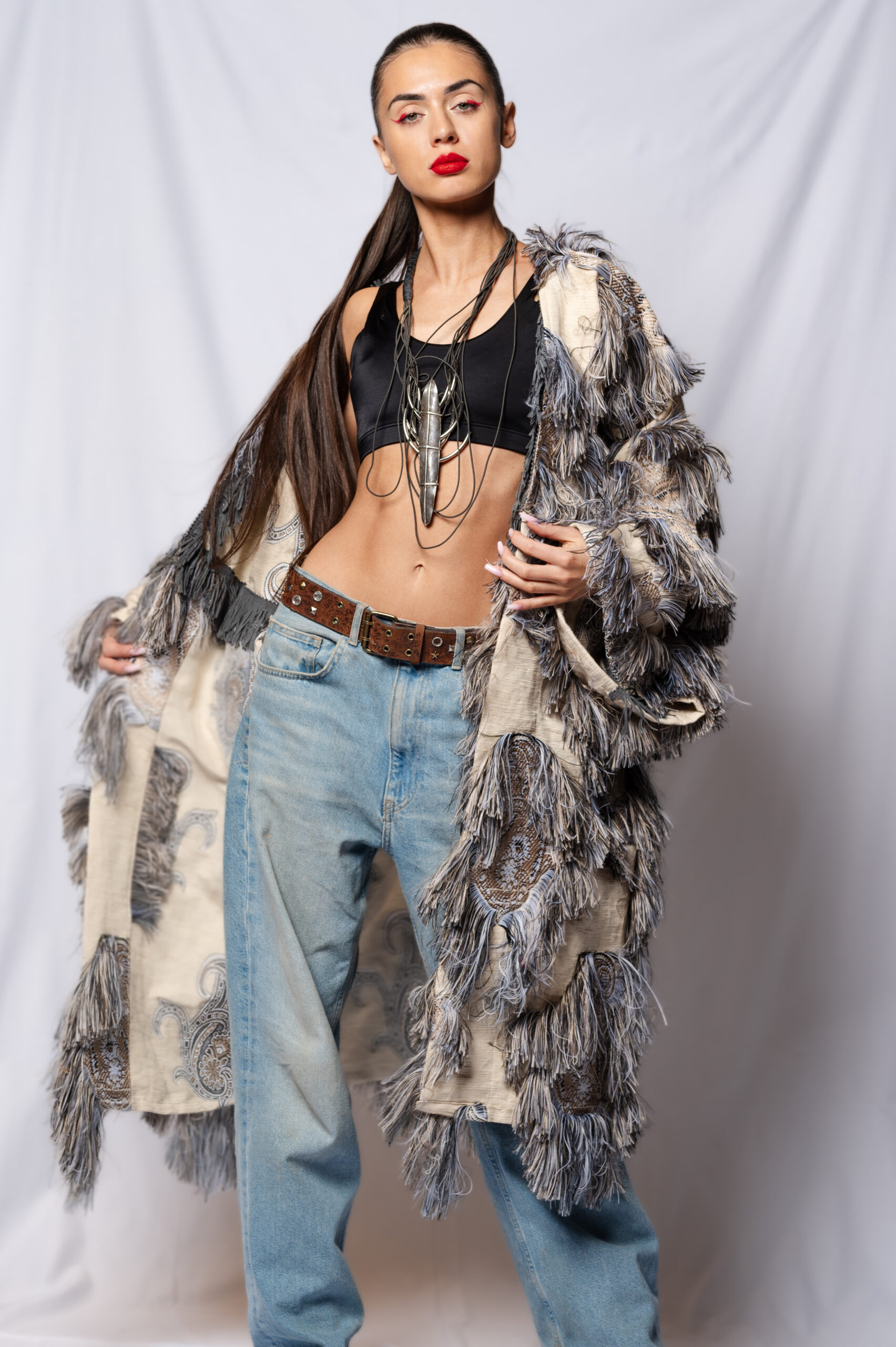 Effortless layering with soulful textures. Sheer Kimono for the free-spirited wanderer with a city edge.